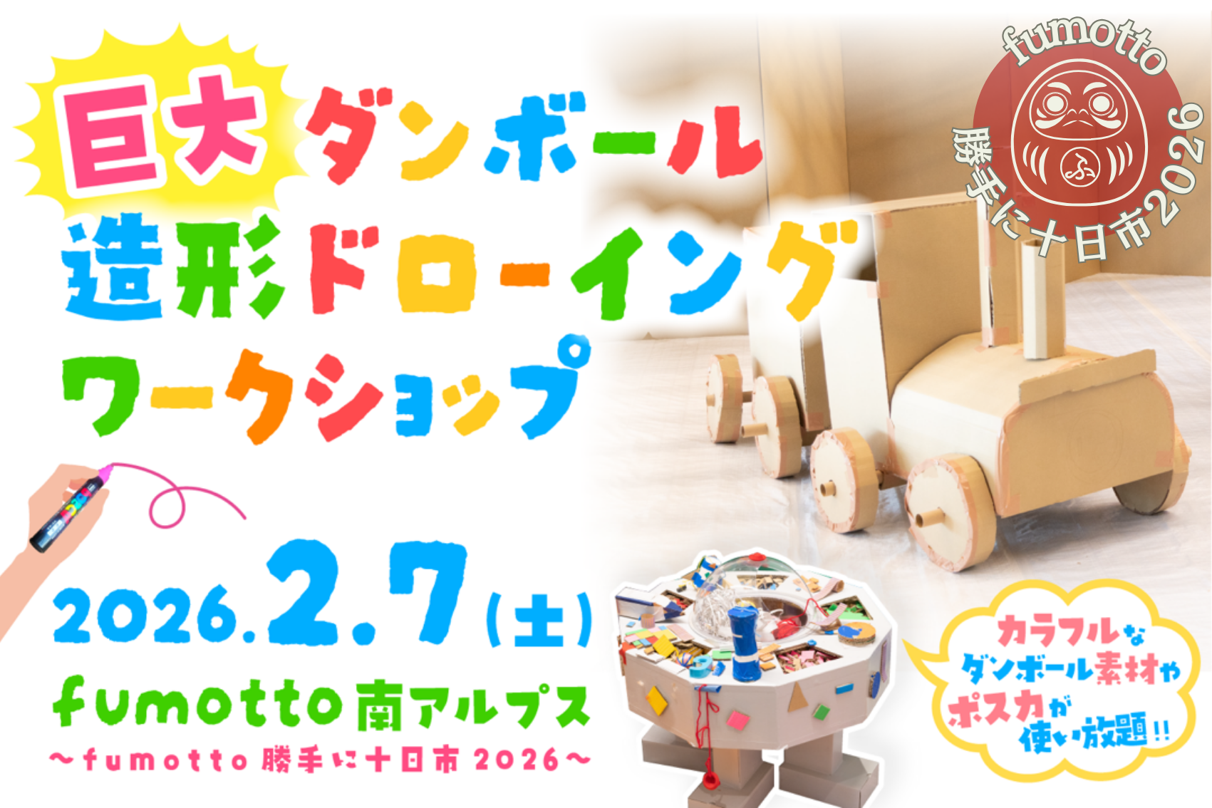 ダンボール造形にポスカや素材でお絵描き&デコレーション